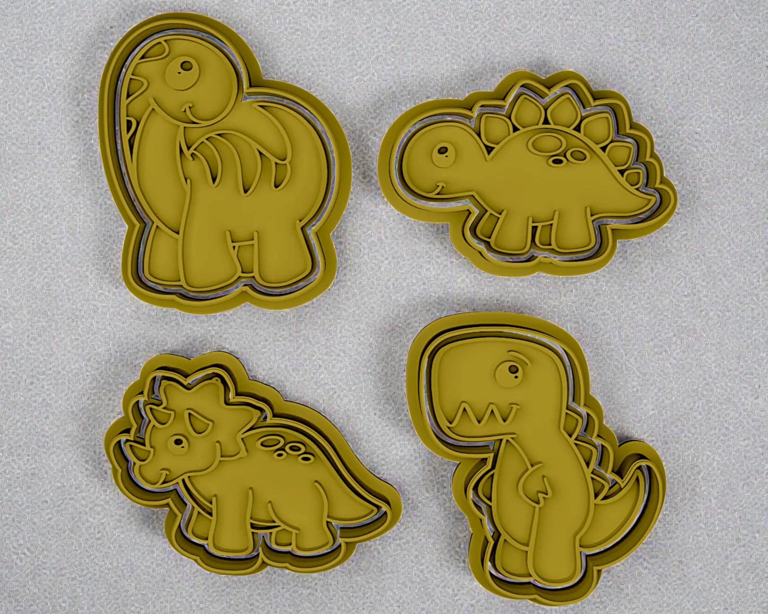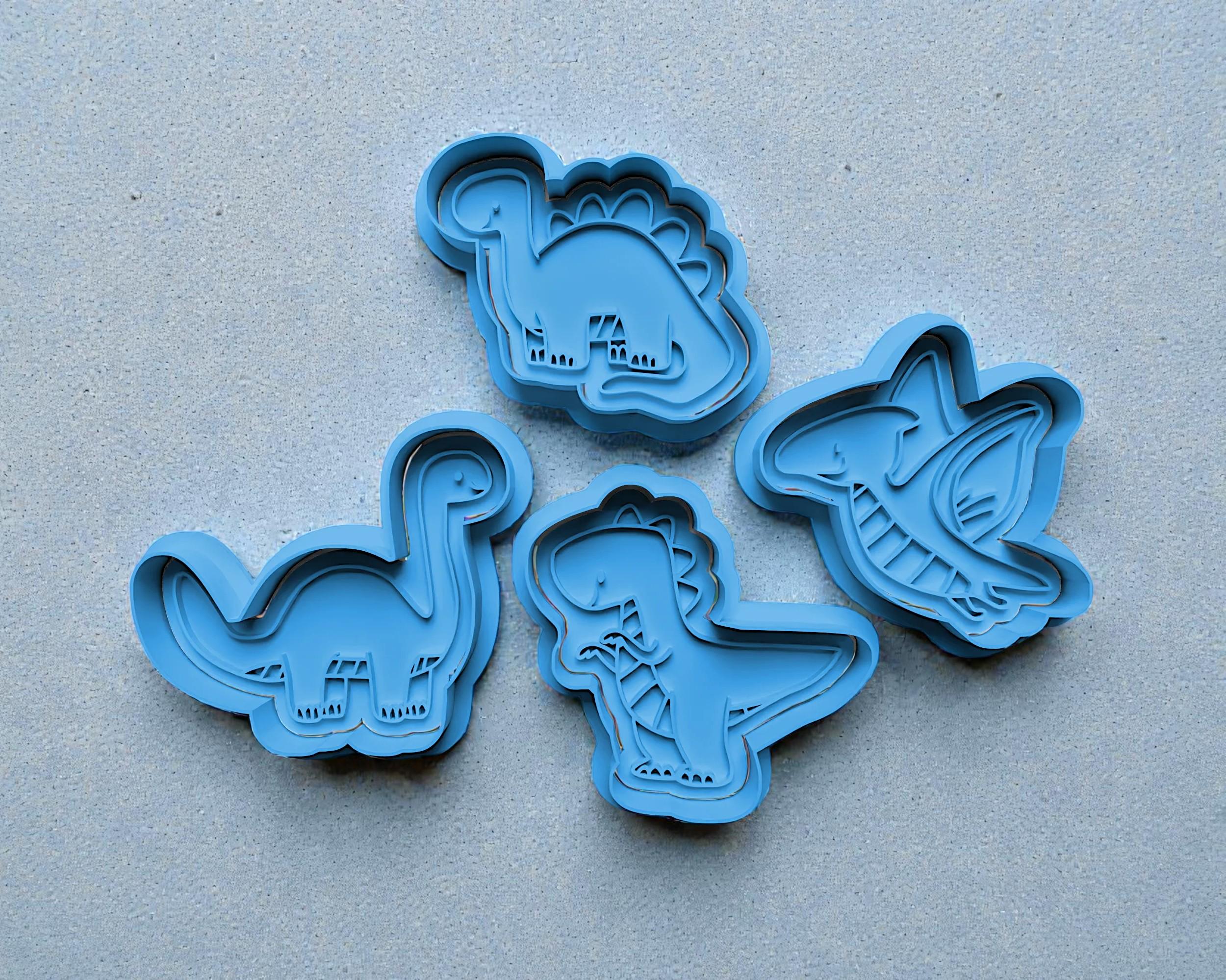 Each cutter has a maximum length of 8 cm and a depth of 12.5 mm, allowing for clean cuts and well-defined cookie shapes that hold their form during baking. The detailed dinosaur designs make them ideal for birthday parties, themed events, and creative baking moments.