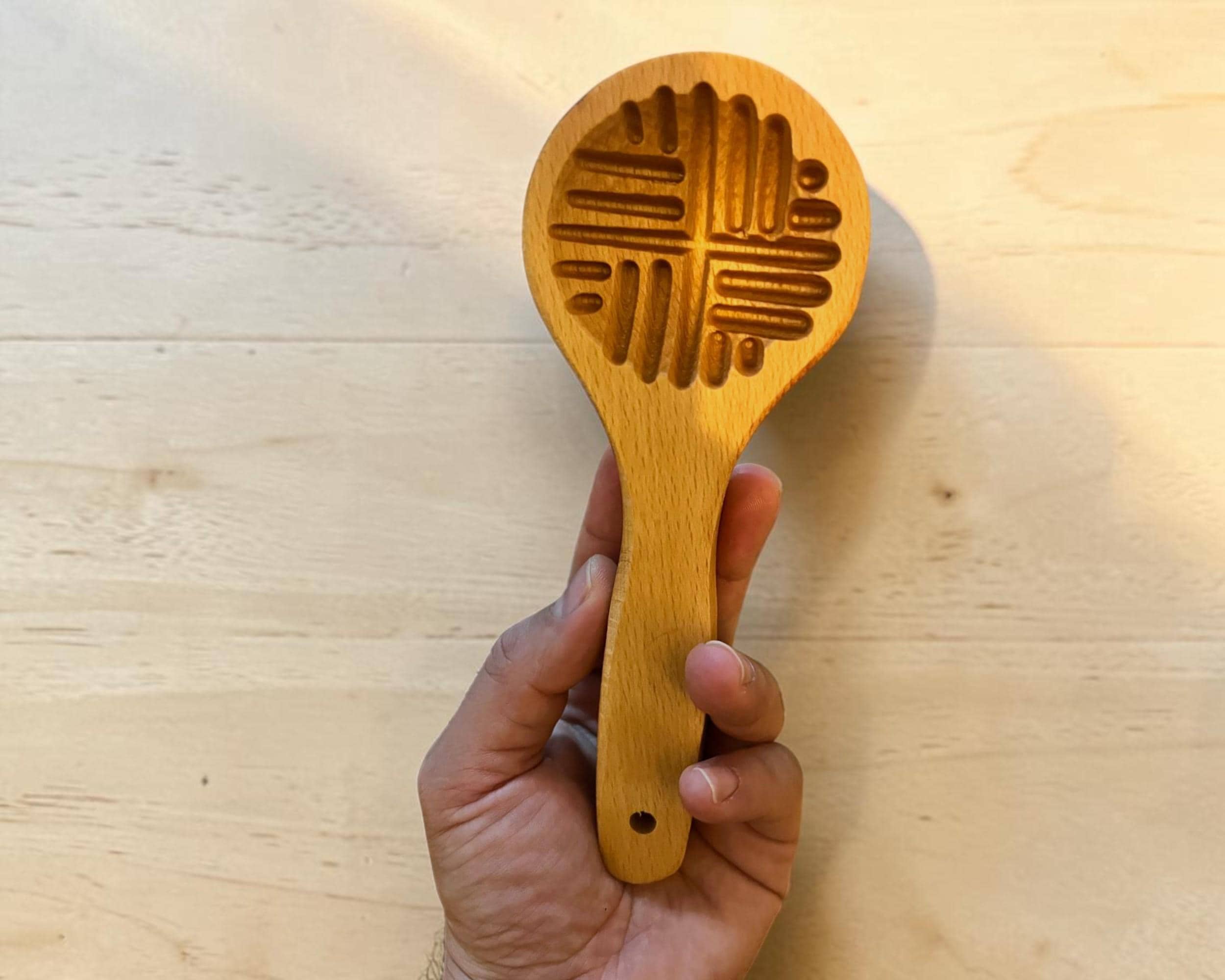 Elevate your home baking with this authentic Hand-Carved Round Wooden Cookie Mold, featuring a unique geometric line pattern. Perfectly designed for crafting traditional Middle Eastern Maamoul, Turkish Kombe, and beautifully detailed shortbreads, this premium tool brings bakery-quality artistry directly to your kitchen. If you love baking and want to impress your guests with perfectly textured, professional-looking pastries, this sturdy, handcrafted wooden press is exactly what you need. Expertly carved from food-safe, durable solid wood, this mold features a comfortable, ergonomic handle that provides a firm grip and effortless dough release. The intricate geometric design transfers deep, flawless impressions onto your dough, ensuring your baked goods look as incredible as they taste. Highly versatile, this specialized round mold is ideal for date-filled treats, walnut pastries, simple butter cookies, mooncakes, and even craft clay. The smooth finish allows for a quick, clean release of your stuffed cookies without ruining their delicate shape, quickly making this tool a long-lasting favorite in your kitchen collection.
